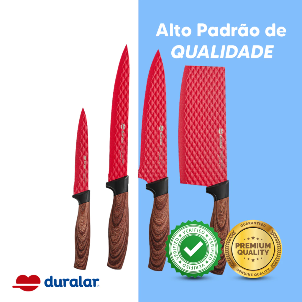 Jogo de Facas Aço Inox 4 Peças Antiaderente Diamond - Duralar